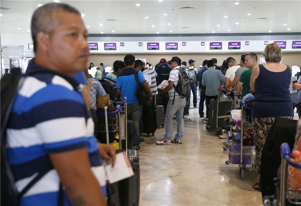 필리핀 마닐라 국제공하에서 비행기 탑승 수속을 밟고 있는 필리핀 노동자들. (사진=AP연합뉴스)