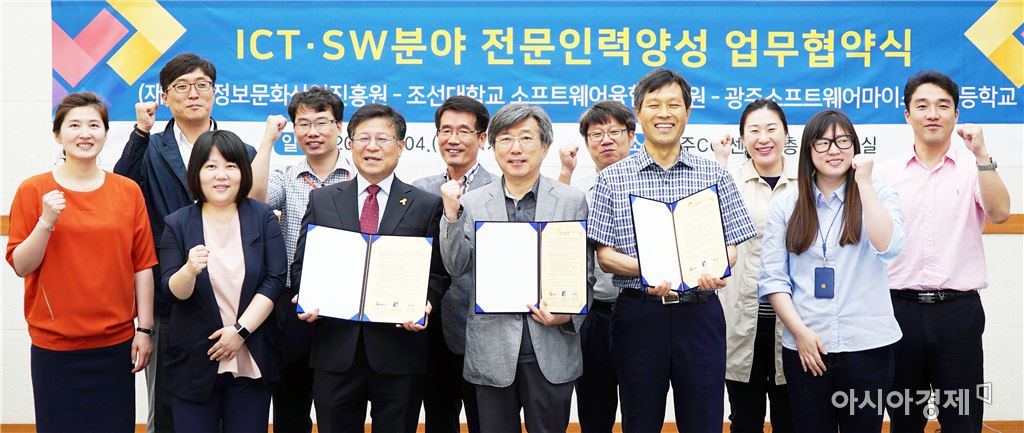 "4차 산업혁명 위해 지역SW유관기관들이 뭉쳤다"[아시아경제 노해섭 기자]광주정보문화산업진흥원과 조선대학교 소프트웨어융합교육원, 광주소프트웨어마이스터고등학교는 지난 4일 광주CGI센터에서 '4차산업혁명 실무형 ICT·SW분야 전문인력 양성을 위한 업무협약’을 체결했다. 이번 업무협약은 2016년 광주전남SW융합클러스터사업에 선정된 광주정보문화산업진흥원과 올해 SW중심대학 사업에 선정된 조선대학교, 그리고 2017년 개교한 광주소프트웨어마이스터고 등 지역의 SW관련 진흥기관과 교육기관을 중심으로 4차 산업혁명에 대비하여 ICT?SW분야의 전문인재 양성을 위한 공동의 사업 추진을 위해 마련되었다. 이번 협약을 통해 4차 산업혁명을 대비한 SW융합 인식확산과 실무형 SW융합 전문인력의 양성, 기술형 창업생태계 조성을 위한 협력프로그램을 마련키로 했다. 또한 국제SW테스트전문가자격인 ISTQB교육도 진행하기로 했다.지난 4월 광주정보문화산업진흥원과 광주소프트웨어마이스터고는 소프트웨어마이스터고 학생들을 대상으로 2박3일 ‘SW전공능력 함양캠프’을 개최해 큰 호응을 얻은 바 있다.조선대학교 SW융합교육원 정일용 원장은 “조선대학교는 SW중심대학 선정을 계기로 지역SW거점 대학으로서 역할을 다할 것”이라고 말했다.광주소프트웨어마이스터고 고익종 교장은 “산업현장에서 바로 활용이 가능한 SW전문가를 배출하는데 최선을 다하겠다”고 말했다. 광주정보문화산업진흥원 이정현 원장은 “ICT?SW 전문인력과 관련 기업에 일자리와 비전을 줄 수 있는 사업으로 만들겠다”고 밝혔다. 노해섭 기자 nogary@<ⓒ세계를 보는 창 경제를 보는 눈, 아시아경제(www.asiae.co.kr) 무단전재 배포금지>