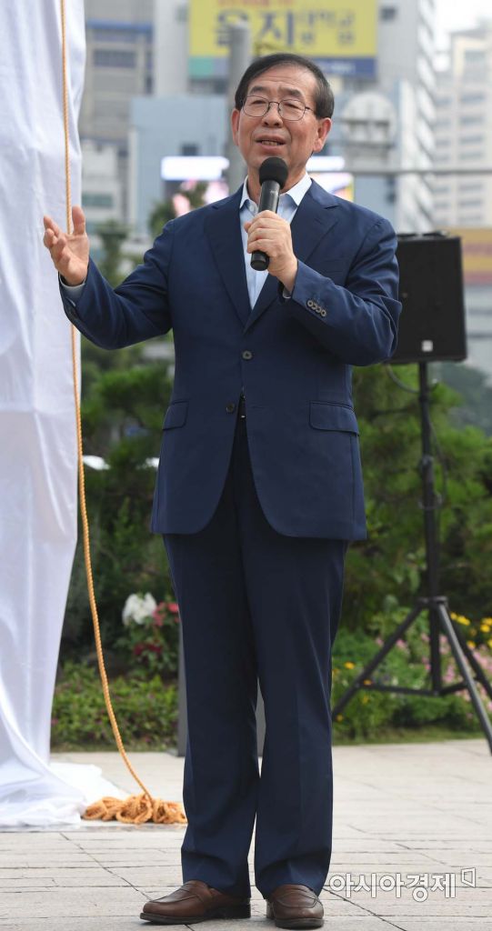 [아시아경제 백소아 기자] 5일 서울 중구 서울광장에서 열린 공공프로젝트 오늘 제막식에서 박원순 서울시장이 인사말을 하고 있다. 스피커 200여 개를 쌓은 모양의 5.2m 높이인 '시민의 목소리'는 작품 앞에 마이크를 설치해 시민이 목소리를 녹음하면 배경 소리와 섞여 탑 안에 설치된 스피커로 흘러나온다.백소아 기자 sharp2046@asiae.co.kr<ⓒ세계를 보는 창 경제를 보는 눈, 아시아경제(www.asiae.co.kr) 무단전재 배포금지>