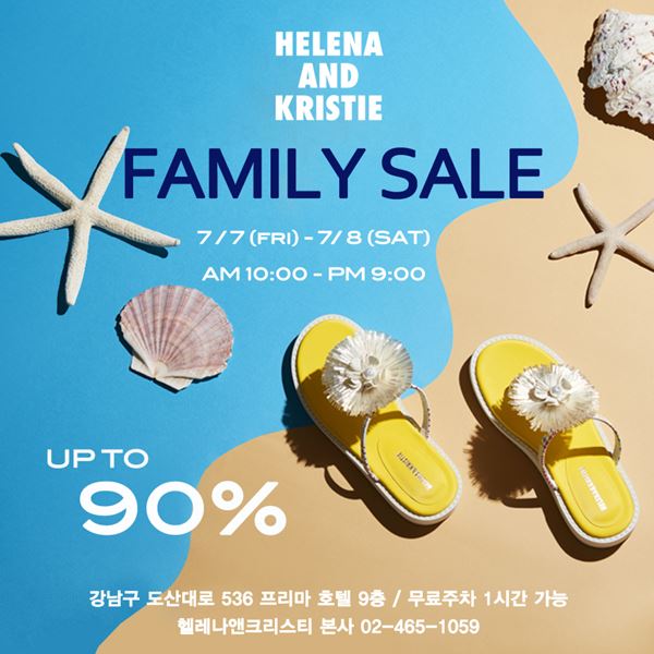 [아시아경제 스타일뉴스 정현혜 기자] 헬레나앤크리스티가 오는 7~8일 이틀간 프리마 호텔 9층에서 패밀리 세일을 진행한다. 헬레나앤크리스티는 ‘글래머 앤 트위스트’를 콘셉트로 차별화된 디자인과 고급스러운 디자인으로 많은 사랑을 받고 있다.이번에 진행되는 패밀리 세일은 봄여름, 가을겨울 시즌 상품부터 샘플과 협찬제품 등 다양한 제품군을 최대 90%까지 대폭 할인된 균일가로 만나볼 수 있다. 드라마 혹은 공식 석상에서 셀럽들이 선보였던 슈즈들을 파격적인 가격에 만날 수 있는 특별한 기회다.헬레나앤크리스티 측은 “이번 패밀리 세일은 헬레나앤크리스티에게 꾸준한 사랑을 보내준 고객들을 위해 최대 90%까지 할인 된 가격으로 만날 수 있는 특별한 행사로 기획했다”며 “다가오는 휴가 시즌을 맞아 발끝까지 럭셔리하게 빛내 줄 슈즈를 기분 좋은 가격으로 구매할 수 있는 절호의 기회가 될 것”이라고 전했다.사진제공=핏플랍