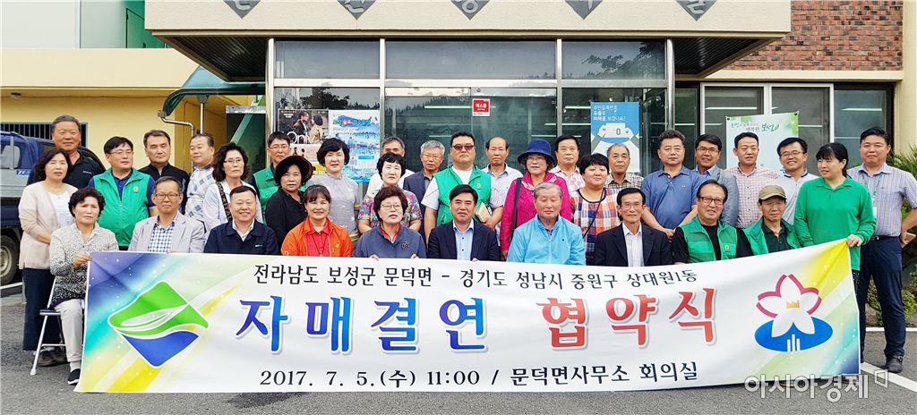 [아시아경제 노해섭 기자]보성군 문덕면(면장 정영숙)은 지난 5일 면사무소 회의실에서 경기도 성남시 중원구 상대원1동(동장 길인호)과 상생협력을 약속하는 자매결연 협약식을 체결했다. 협약식은 정영숙 문덕면장, 양회만 면민회장, 길인호 상대원1동장, 염동준 새마을회장 등 60여명이 함께한 가운데 두 지역간 상호 발전과 화합을 도모하고 지속적인 인적·물적 교류로 우호 관계를 증진하기로 다짐했다. 또한, 농촌 일손돕기, 지역 특산물 홍보 및 직거래 장터 개설, 문화축제 상호 방문 등 지역경제, 문화예술 분야에 걸쳐 폭넓은 교류를 추진하기로 했다. 정영숙 면장은 “우리고장에서 생산되는 고품질의 농·특산물을 도시의 소비자에게 직거래를 통해 저렴하게 판매해 지역 경제 활성화에 크게 기여할 것으로 기대된다”며 “양 지역의 적극적인 교류와 상호협력으로 도시와 농촌 자매결연의 모범사례가 되길 바란다”고 말했다. 한편, 협약식 후 상대원1동 새마을회원들은 문덕면 내동마을 단호박 수확 현장에 참여하여 노동력 부족으로 어려움을 겪고 있는 농가돕기를 적극적으로 추진했다. 노해섭 기자 nogary@<ⓒ세계를 보는 창 경제를 보는 눈, 아시아경제(www.asiae.co.kr) 무단전재 배포금지>