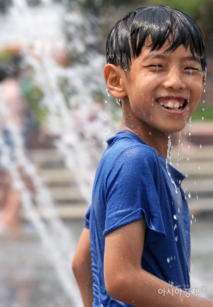 [아시아경제 문호남 기자] 서울 낮 최고기온이 33도로 찜통더위를 보인 6일 서울 여의도 물빛광장을 찾은 한 어린이가 물놀이를 하며 더위를 식히고 있다.문호남 기자 munonam@asiae.co.kr<ⓒ세계를 보는 창 경제를 보는 눈, 아시아경제(www.asiae.co.kr) 무단전재 배포금지>