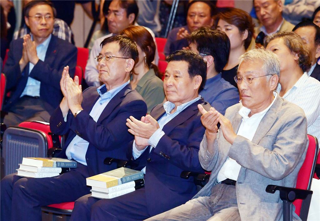 [아시아경제 노해섭 기자]윤장현 광주광역시장이 7일 오후 서구 5·18기념문화센터 2층 대동홀에서 열린 5·18항쟁을 다룬 최초의 도서, '죽음을 넘어 시대의 어둠을 넘어' 전면증보판 출판기념 행사에 참석해 박수를 치고 있다.
