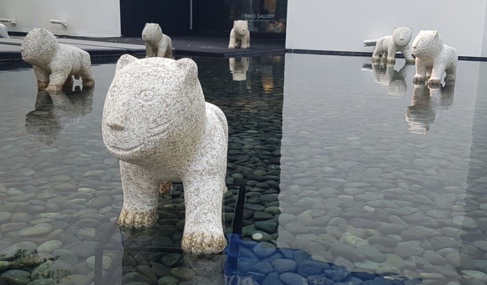 [아시아경제 김세영 기자] 갤러리 외부의 물을 이용한 설치 조각 작품은 마치 호랑이가 물 위를 걷는 듯 특색 있는 볼거리를 제공한다. 작품의 내용을 친근한 시각언어로 관객에게 전하고자 하는 안윤모 작가(55)는 ‘유쾌한 정글’, ‘도심 속 부엉이’ 등 동물을 통한 의인화 작업 활동을 이어왔다. 전시 제목 ‘도시가 꾸는 꿈’에서 알 수 있듯 그는 날카로운 경적소리만이 가득한 회색빛의 도심에서 피어나는 자연에 주목한다. 특히 현대인들 사이에 팽배한 무관심과 도심이 몰이해를 감싸는 자연의 안락함, 그리고 인간과 자연이 함께 공존해야 한다는 메시지를 전한다. 현대의 우화처럼 감각적이면서도 친근한 작품은 관람객에게 편안함을 선사하며, 동시에 자연적 소재가 주는 생동감을 느낄 수 있다. 이번 개인전에서는 작가가 그 동안 작업해 온 대표적인 동물 이미지들을 골라 만든 350점의 대형 설치 작업 ‘동물의 초상’을 선보이며, 이외에도 도시를 상징하는 미니어처 건물 60점과 회화, 조각 및 설치 등 다양한 매체를 활용한 작품이 전시된다.안윤모, Portrait of Animals (동물의 초상), Installation, 2017