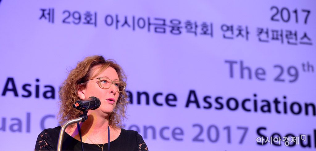 [아시아경제 문호남 기자] 캐런 벤슨(Karen Benson) 호주 퀸즐랜드대 비즈니스스쿨 교수(아시아금융학회장)가 8일 서울 영등포구 콘래드 호텔에서 아시아경제와 아시아금융학회 주최로 열린 '2017 서울아시아금융포럼(SAFF) 및 제29회 아시아금융학회 연차 컨퍼런스'에서 환송사를 하고 있다.문호남 기자 munonam@asiae.co.kr<ⓒ세계를 보는 창 경제를 보는 눈, 아시아경제(www.asiae.co.kr) 무단전재 배포금지>