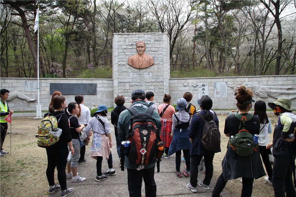 엄홍길 대장과 함께하는 순례길 트레킹 중 이준 열사 묘역에 참배하는 학생들