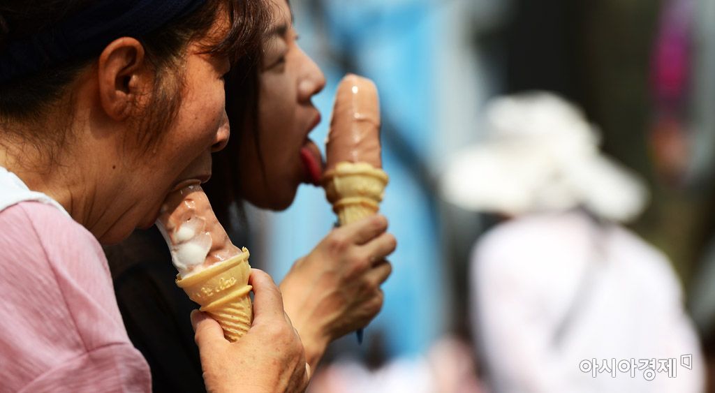 [아시아경제 문호남 기자] 장마가 소강상태를 보이며 전국에 폭염특보가 내린 11일 서울 중구 명동쇼핑거리에서 관광객들이 아이스크림을 먹으며 더위를 식히고 있다.문호남 기자 munonam@asiae.co.kr<ⓒ세계를 보는 창 경제를 보는 눈, 아시아경제(www.asiae.co.kr) 무단전재 배포금지>