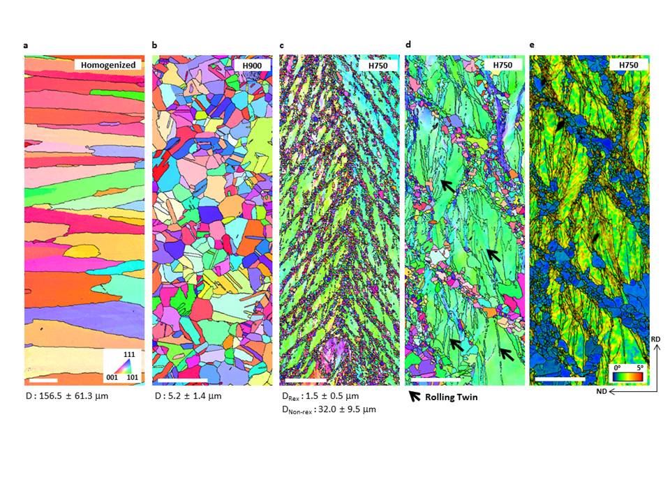 [아시아경제 정종오 기자] 영하 198도에서도 견뎌내는 초고강도 합금이 개발됐다. 김형섭, 손석수 포항공대 교수 연구팀이 영하 196도의 극저온에서 항복강도 1GPa에 달하는 초고강도 고엔트로피 합금을 내놓았다. 항복강도란 탄성 한계를 넘어 소성변형(응력을 제거해도 원래의 치수·모양으로 돌아가지 않는 변형)이 발생하기 시작하는 응력을 말한다. 전통적 합금은 합금 원소를 첨가할수록 금속간 화합물(intermetallic compound)을 형성하고 이는 소재의 기계적 성질을 취약하게 만들어 다량의 합금 원소를 첨가하는 것은 제한돼 왔다.기존 합금과 달리 한 원소에 치우치지 않고 모두가 주요 원소로 작용해 금속간 화합물을 형성하지 않고 단상을 유지하는 고엔트로피 합금(high entropy alloy, HEA)은 온도가 극저온(영하 196도)으로 낮아질수록 강도, 연성이 높아진다. 파괴인성이 우수한 특성이 있었는데 항복강도가 낮아 극한환경의 구조재료로 활용되기에는 한계가 있었다.연구팀은 이런 한계 극복을 위해 전산모사법의 열역학 계산을 활용해 새로운 고엔트로피 합금 조성을 선별했다. 실제 제조를 통해 우수한 기계적 물성을 지니는 고엔트로피 합금 개발에 성공했다. 기존의 균질화 열처리, 열간압연, 냉간압연과 열처리 공정을 거치는 일반적 방식에서 탈피했다. 열간압연을 생략하고 바로 냉간압연, 적정온도에서 열처리를 통해 미세조직을 제어하는 방식을 활용해 상온과 극저온에서 항복강도를 크게 향상시켰다. 손석수 교수는 "이번 연구는 새로운 고엔트로피 합금 개발 방법의 제시와 기존의 개념과 다른 방식의 미세조직 제어를 통해 기계적 물성을 향상시킨 연구"라며 "극지방용 선박, 원유와 액체가스 운반용기, 우주항공과 심해산업 등 다양한 극한 환경 구조재료 산업에 잠재력을 가지며 크게 활용될 것으로 기대된다"고 말했다. 정종오 기자 ikokid@asiae.co.kr<ⓒ세계를 보는 창 경제를 보는 눈, 아시아경제(www.asiae.co.kr) 무단전재 배포금지>