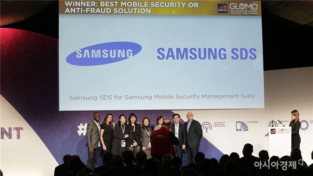 MWC 2017에서 삼성SDS가 최고 모바일 보안 솔루션 부문에서 글로벌 모바일 어워즈(Glomo상)를 수상했다.