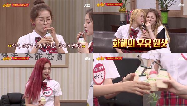 [아시아경제 스타일뉴스 정현혜 기자] 레드벨벳이 선보인 이색적인 스트로우가 화제다.지난 15일 방송된 JTBC ‘아는 형님’에서는 신곡 ‘빨간 맛’과 함께 컴백한 레드벨벳이 지난 해에 이어 다시 한 번 출연, 유쾌한 매력을 선보여 시선을 사로잡았다.특히, 아이돌을 꿈꾸는 불량학생으로 변신한 레드벨벳은 아는 형님 멤버들과 함께 상황극을 선보여 웃음을 자아냈다. 웬디와 예리는 서로 다투다가 하트 모양의 스트로우로 함께 얼굴을 맞대고 바나나맛우유를 마시면서 화해하는 상황을 연출하기도 했다. 조이는 큰 스트로우로 터프하게 우유를 마시는 모습을 연출해 색다른 매력을 뽐내기도 했다. 또한 바나나맛우유로 다 함께 건배를 하기도 하고, 슬기는 아재개그를 선보이는 등 재치있는 매력을 선보였다. 레드벨벳의 다양한 매력만큼이나 그녀들이 선보인 스트로우는 색다른 디자인으로 관심을 집중시켰다. 웬디와 예리가 함께 우유를 마시는 장면에서 나온 스트로우는 빙그레에서 오직 빙그레 바나나맛우유만을 위해 특별히 출시한 마이스트로우‘러브 스트로우’제품이다. 좁은 간격과 하트 모양의 디자인이 돋보이며, 우유를 마시면 하트가 우유의 색으로 채워져 커플 혹은 친구끼리 재미있게 즐길 수 있는 이색적인 아이템이다. 또한, 조이가 터프하게 우유를 마시는 장면에서 선보인 스트로우는 마이스트로우‘자이언트 스트로우’로 구멍의 직경이 12mm로 일반 빨대보다 훨씬 커 요즘 같이 무더운 여름철 더욱 시원하게 우유를 즐길 수 있는 아이템이다. 앞서 공개된 ‘러브 스트로우’, ‘자이언트 스트로우’ 등 마이스트로우의 상황별 활용 노하우를 담은 바이럴 영상은 유튜브에서 일주일만에 조회수 5백만여 건을 돌파하며 화제를 계속하고 있다. 한편, ‘아는 형님’ 속 레드벨벳이 선보인 빙그레 마이스트로우‘러브 스트로우’와 ‘자이언트 스트로우’는 링거 모양의 독특한 디자인이 돋보이는 ‘링거 스트로우’와 함께 오는 17일부터 23일까지 G마켓에서 한정 수량으로 만나볼 수 있다. 8월 초부터는 옐로우 카페에서도 만나볼 수 있다.사진=네이버 V앱 ‘나뮤캐스트3’ 캡처
