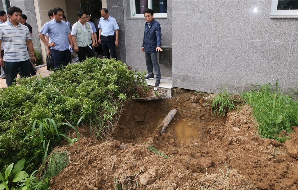 남경필 경기도지사가 품질검수단과 함께 부영아파트 내 문제가 있는 공사현장을 살펴보고 있다.