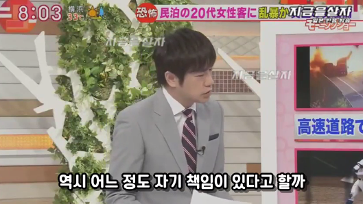 최근 불거진 일본 에어비앤비 한국 여성 성폭행 사건과 관련해 일본 방송의 한 진행자가 한 발언에 파문이 일고 있다.지난 18일, ‘지금을 살자’라는 국내 블로그에선 한 일본방송에서 에어비앤비 한국인 여성 성폭행 사건을 다룬 편을 한국어 자막으로 번역해 게재했다.해당 방송엔 남녀 진행자를 두고 여러 패널들이 출연해 에어비앤비의 문제점에 대해 얘기했다.여성 진행자는 “나도 숙박 시설을 여러 번 이용했다. 예약 전 집주인의 세세한 정보를 조금만 찾아봐도 알 수 있다”며 이번 사건의 피해자에게 어느 정도 책임이 있다는 소지의 발언을 했다.이어 남성 진행자는 “이번 여성은 범죄를 당했기 때문에 피해자지만 어느 정도 자기 책임도 있다”고 주장했다.해당 영상을 본 네티즌들은 “방송에서 어떻게 저런 말을 하지”, “너무도 뻔뻔한 족속들이다”, “분노가 치밀어 오른다”는 등의 반응을 보이고 있다.한편, 이번 사건에 대해 일본 경찰은 후쿠오카현 주오시의 한 에어비앤비 숙소에서 한국인 여성 투숙객 A씨(31)를 성폭행한 혐의로 일본인 남성 B씨(34)를 검거했다.아시아경제 티잼 최희영 기자 nvychoi@asiae.co.kr<ⓒ세계를 보는 창 경제를 보는 눈, 아시아경제(www.asiae.co.kr) 무단전재 배포금지>
