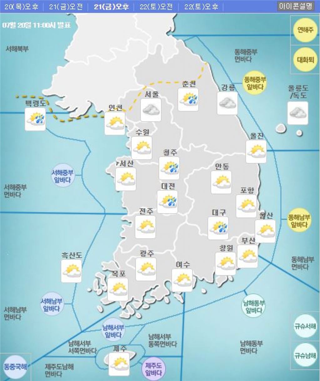 오늘(21일) 오후 날씨/사진=기상청 홈페이지 캡처