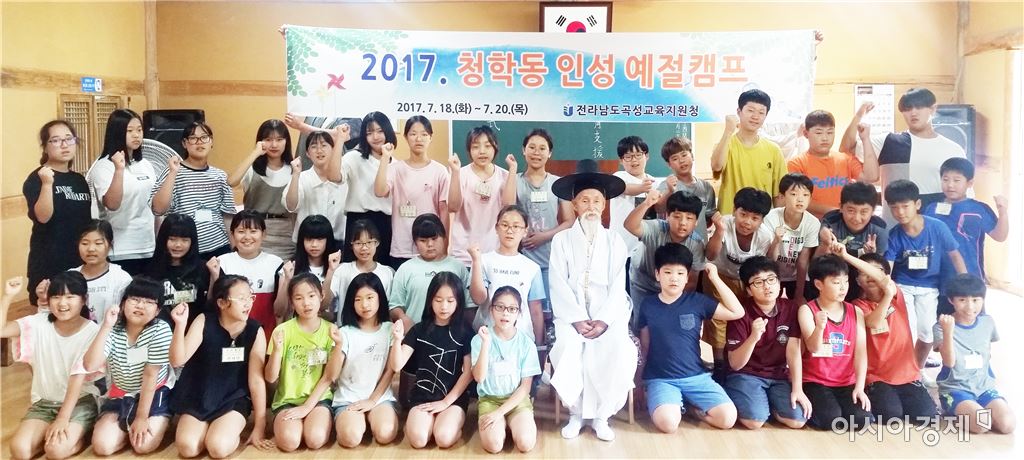 "지리산 청학동에서 조상의 슬기와 지혜 체험"[아시아경제 노해섭 기자]곡성교육지원청(교육장 박찬주)은 지난 18일부터 2박 3일 일정으로 관내 초·중학생 40여명이 참여한 가운데 청학동 예절학교 청림서당에서 인성 예절캠프를 실시했다.이번 캠프는 부모님에 대한 감사의 마음을 기르고 조상의 슬기와 지혜를 직접 체험하는 활동을 통해 효에 대한 인식을 개선하고 인성 예절을 함양하는 데에 역점을 두었다. 학생들은 기초생활예절, 전통배례교육, 다례교육을 통해 생활 예절을 배우고 사자소학, 계촌법, 24절기 및 세시풍속 등을 익힘으로써 조상의 슬기와 지혜를 체험하는 시간을 가졌다. 또한 인절미 만들어 먹기, 천연염색 체험, 전통놀이 등을 통해 친구들 간에 서로 배려하고 협력하는 체험중심 활동을 실시했다.탐방에 참여한 곡성중앙초등학교 김민주(5년)양은 “부모님께서 말씀하실 때 새겨듣지 않고 내 주장을 내세우는 경우가 많았는데, 사자소학 시간에 배운 구절들을 통해 부모님께 죄송한 마음이 많이 들었고 캠프가 끝나고 집에 돌아가면 부모님, 어른들, 친구들에게 더 곱고 아름다운 말을 사용해야 해야겠다”고 소감을 말했다.박찬주 교육장은 “청학동에서 자연과 더불어 이루어지는 다양한 체험활동을 통해 학생들이 심신을 정화하고, 일상생활에서 반드시 지켜야 할 생활규범과 어른 공경하는 법 등을 체득함으로써 바른 인성을 함양하는 계기가 되길 바란다”고 밝혔다.전라남도곡성교육지원청은 '2017 지역단위 인성교육 네트워크'공모에 선정되어 지역내 유관기관과의 협력을 통해 관내 학생들을 대상으로 향교?서원 체험 프로그램, 찾아가는 효 인형극 및 체험학습, 심청 인성캠프 등 다양한 효교육 기반 인성교육 확산을 위해 주력하고 있다.노해섭 기자 nogary@<ⓒ세계를 보는 창 경제를 보는 눈, 아시아경제(www.asiae.co.kr) 무단전재 배포금지>