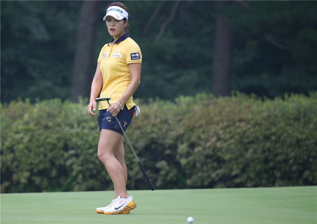 이승현이 MY문영퀸즈파크챔피언십 첫날 11번홀에서 퍼팅 후 공의 방향을 살피고 있다. 사진=KLPGA