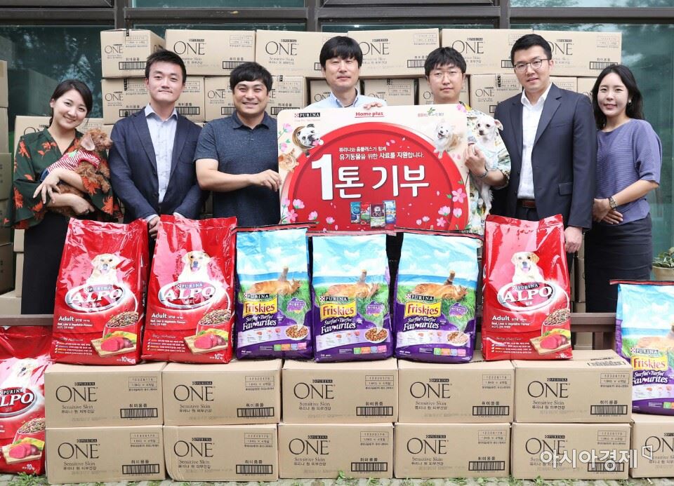 [아시아경제 오종탁 기자] 홈플러스와 네슬레퓨리나가 유기반려동물 지원에 앞장섰다.홈플러스의 사회공헌재단 'e-파란재단'은 네슬레 퓨리나와 지난 21일 경기도 남양주시 동물자유연대 반려동물복지센터에 유기반려동물을 위한 사료 약 1t을 기부했다고 24일 밝혔다.이날 기부된 총 1톤의 사료는 지난 5월 한 달 동안 전국 142개 홈플러스 매장에서 고객이 네슬레 퓨리나 기부 참여 제품인 알포, 퓨리나원(반려견용·반려묘용), 프리스키(건사료)를 구매할 때마다 제품당 100g씩 사료를 적립해 기부하는 '100g의 사랑 나눔 캠페인'을 통해 마련됐다.e-파란재단은 네슬레 퓨리나와 지난 2013년부터 올해로 5년째 100g의 사랑 나눔 캠페인을 진행, 현재까지 총 9t의 사료를 유기반려동물을 위해 기부한 바 있다.오종탁 기자 tak@asiae.co.kr<ⓒ세계를 보는 창 경제를 보는 눈, 아시아경제(www.asiae.co.kr) 무단전재 배포금지>