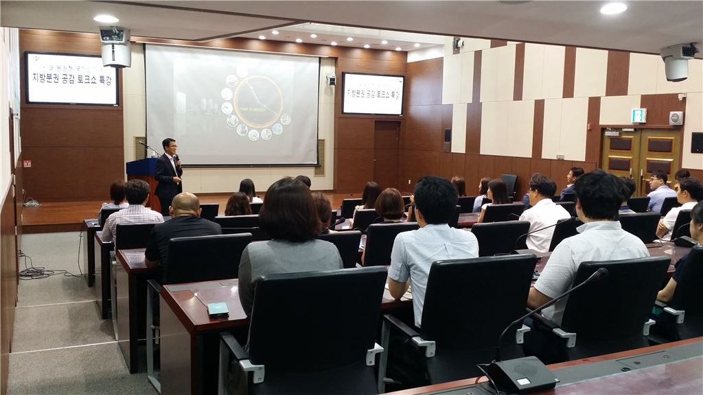 [아시아경제 박종일 기자] 은평구(구청장 김우영)가 지난 21일 ‘왜 분권형 국가인가?’를 주제로 서울시 지방분권협의회 위원인 소순창 건국대 교수를 초빙, 직원 100여명을 대상으로 ‘지방분권 공감 토크쇼’특강을 개최했다.이번 ‘지방분권 공감 토크쇼’는 서울시와 자치구간 ‘자치분권 실천을 위한 약속’ 이행을 위해 지난해에 이어 두 번째로 실시되는 것으로 21일 은평구를 시작으로 28일까지 서울시 6개 자치구가 릴레이로 진행하게 된다. 소순창 교수는 새로운 지방분권형 국가 구현의 결실로 ▲지역경제 활성화 ▲교육대국 실현 ▲복지국가 실현을 강조하면서 지방분권이라는 다소 딱딱한 주제를 참석자들이 알기 쉽고 공감할 수 있도록 진행했다.