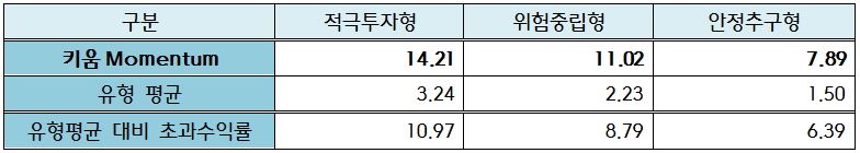 [아시아경제 임혜선 기자]키움증권은 24일 발표된 금융위원회가 주관하는 2차 로보어드바이저 테스트베드 전 유형에서 수익률 1위에 올랐다고 25일 밝혔다. 특히 적극투자형 알고리즘의 경우 14.21%의 수익률을 기록했다. 2차 테스트베드의 운용이 시작된 지 2개월만에 달성한 성과다.키움 Momentum은 GICS 분류에 따른 10개 섹터 중에서 시장 주도주에 선별해서 투자한다. 알고리즘의 데일리 자동 모니터링을 통한 수시·정기 리밸런싱으로 포트폴리오를 유지해 낮은 변동성 대비 고수익 추구가 가능하다는 특징이 있다.한편 키움증권은 관련 플랫폼 개발을 모두 마치고 내달 중 로보어드바이저 알고리즘을 탑재한 랩어카운트 상품 출시를 계획 중에 있다.임혜선 기자 lhsro@asiae.co.kr<ⓒ세계를 보는 창 경제를 보는 눈, 아시아경제(www.asiae.co.kr) 무단전재 배포금지>