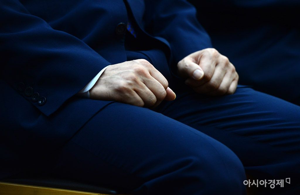 [아시아경제 문호남 기자] 문무일 신임 검찰총장이 25일 서울 서초구 대검찰청에서 열린 취임식에서 주먹을 쥐고 있다.문호남 기자 munonam@asiae.co.kr<ⓒ세계를 보는 창 경제를 보는 눈, 아시아경제(www.asiae.co.kr) 무단전재 배포금지>