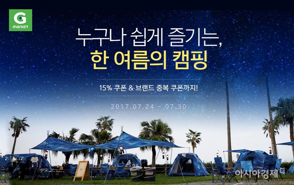 헥사타프, 릴렉스체어 등 2배 이상 판매 늘어G마켓, 한 여름의 캠핑 프로모션…최대 50% 할인 판매2만원 이상 구매 시 15% 할인 쿠폰 제공