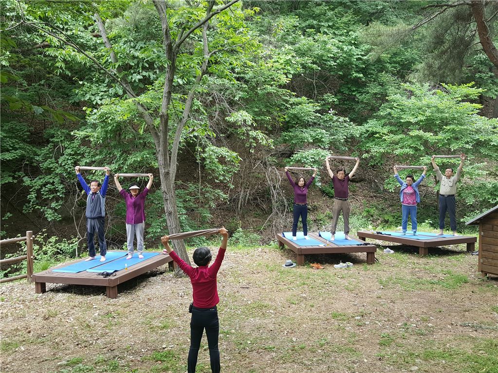 국립양평치유의 숲을 찾은 시민들이 산림치유 프로그램을 체험하고 있다. 한국산림복지진흥원 제공