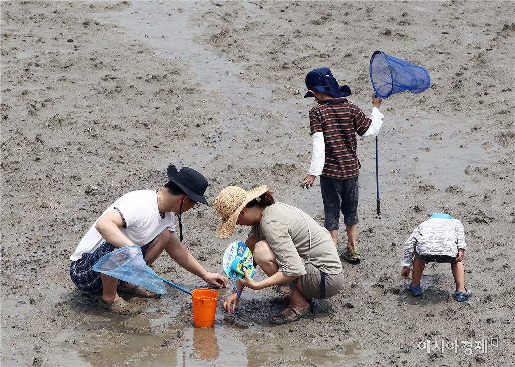 [아시아경제 노해섭 기자]주말인 29일 함평군 함평읍 돌머리해수욕장으로 피서를 온 가족이 오순도순 모여 앉아 갯벌에서 조개를 줍고 게를 잡고 있다.노해섭 기자 nogary@<ⓒ세계를 보는 창 경제를 보는 눈, 아시아경제(www.asiae.co.kr) 무단전재 배포금지>