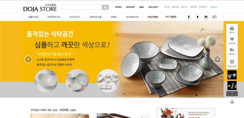한국도자재단이 도자판매를 위해 개설한 쇼핑몰 도자세상 홈페이지