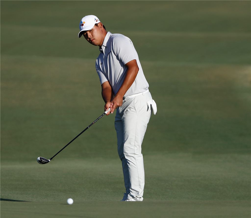 김시우가 더플레이어스 최종 4라운드 당시 18번홀 그린 밖에서 페어웨이우드로 퍼팅하고 있다.