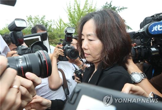 문화·예술계 지원배제 명단인 이른바 '블랙리스트' 작성·관리에 관여한 혐의에 대해 법원으로부터 집행유예를 선고받은 조윤선 전 문화체육관광부 장관이 7월27일 오후 석방돼 경기도 의왕시 서울구치소에서 나오고 있다[이미지출처=연합뉴스]