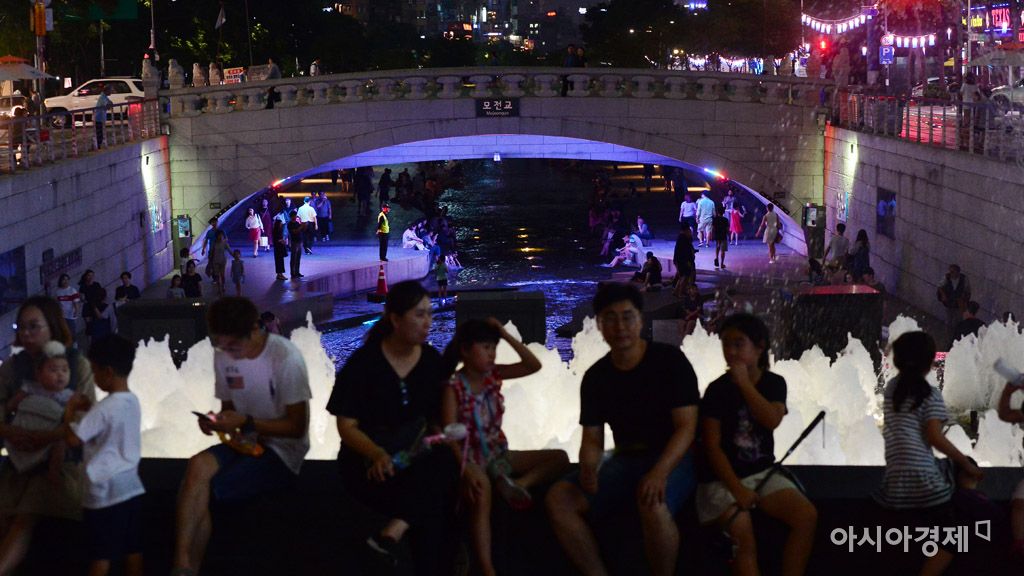 [아시아경제 문호남 기자] 전국 곳곳에 열대야 현상이 나타난 1일 서울 종로구 청계천에서 시민들이 더위를 식히고 있다.문호남 기자 munonam@asiae.co.kr<ⓒ세계를 보는 창 경제를 보는 눈, 아시아경제(www.asiae.co.kr) 무단전재 배포금지>
