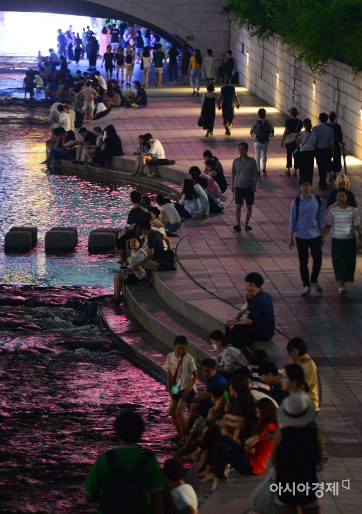 [아시아경제 문호남 기자] 전국 곳곳에 열대야 현상이 나타난 1일 서울 종로구 청계천에서 시민들이 더위를 식히고 있다.문호남 기자 munonam@asiae.co.kr<ⓒ세계를 보는 창 경제를 보는 눈, 아시아경제(www.asiae.co.kr) 무단전재 배포금지>