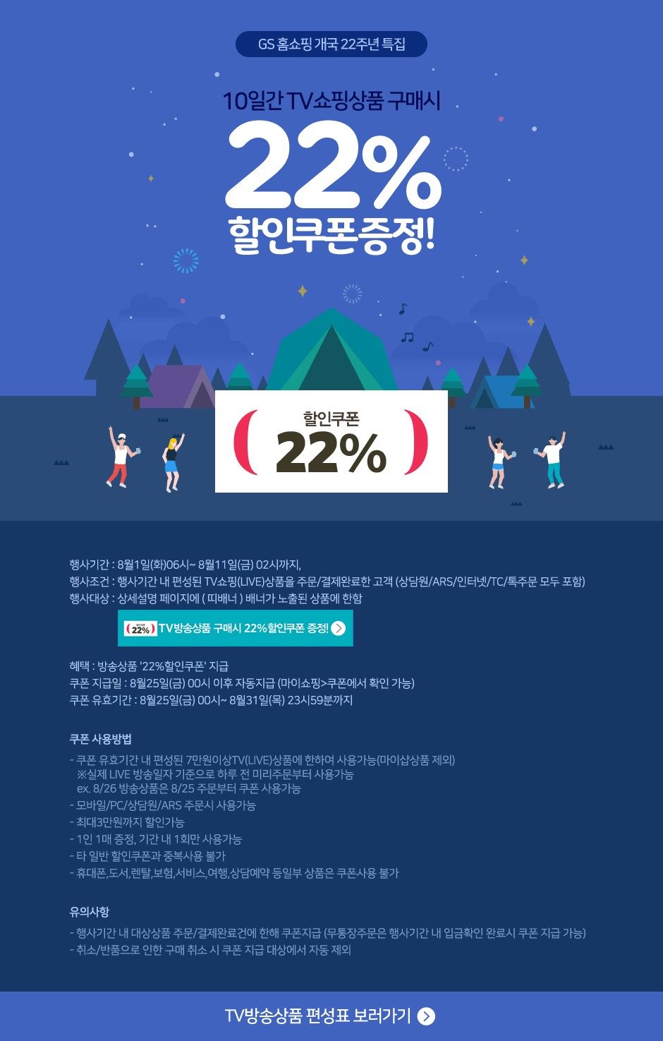 [아시아경제 오종탁 기자] GS샵이 개국 기념 프로모션에 나섰다.GS샵은 개국 22주년을 맞아 방송상품 구매고객에게 22% 할인쿠폰을 증정하는 이벤트를 진행한다고 2일 밝혔다. 이달 1일부터 10일까지 방송하는 TV쇼핑 상품을 7만원 이상 구매하는 모든 고객에게 22% 할인쿠폰을 제공한다. 해당쿠폰은 오는 25일부터 31일까지 사용 가능하다. GS샵은 또 메르세데스 벤츠 자동차를 경품으로 내걸었다. 7, 8월 중 방송 상품을 구매하거나 상담 예약한 고객 1명을 추첨해 벤츠 CLA 250을 경품으로 준다. TV홈쇼핑 채널과 데이터 홈쇼핑 GS마이샵 채널 편성상품을 상담원, 자동응답(ARS), 모바일, 인터넷, 리모컨, 톡주문 등을 통해 주문하면 자동 응모된다.오종탁 기자 tak@asiae.co.kr<ⓒ세계를 보는 창 경제를 보는 눈, 아시아경제(www.asiae.co.kr) 무단전재 배포금지>