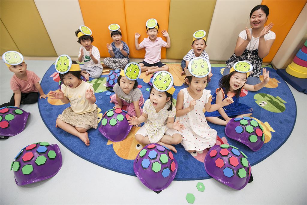 SK텔레콤의 사내 어린이집 '행복날개'가 국제표준화기구(IOS)의 국제 인증을 획득했다고 2일 밝혔다. 사진은 '행복날개'에 다니는 어린이들의 모습.<br />