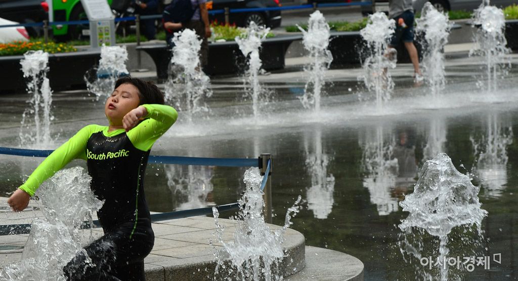 [아시아경제 문호남 기자] 서울 낮 최고기온이 34도까지 오르는 등 가마솥 더위를 보인 2일 서울 종로구 광화문광장 바닥분수를 찾은 어린이가 물놀이를 하며 더위를 식히고 있다. 문호남 기자 munonam@asiae.co.kr<ⓒ세계를 보는 창 경제를 보는 눈, 아시아경제(www.asiae.co.kr) 무단전재 배포금지>