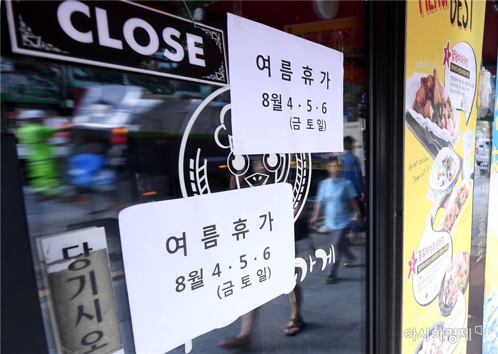 [아시아경제 김현민 기자]본격적인 여름 휴가철을 맞은 4일 서울 충무로의 한 상가에 여름휴가를 알리는 안내 문구가 붙어 있다. 김현민 기자 kimhyun81@asiae.co.kr<ⓒ세계를 보는 창 경제를 보는 눈, 아시아경제(www.asiae.co.kr) 무단전재 배포금지>