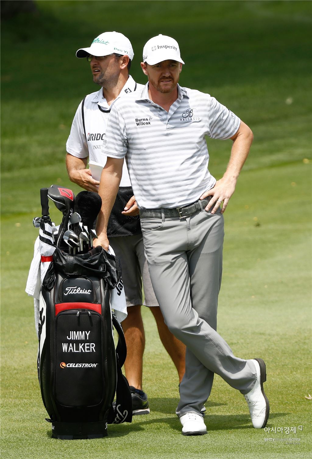 지미 워커가 브리지스톤인비테이셔널 둘째날 11번홀에서 샷 순서를 기다리고 있다. 애크런(美 오하이오주)=Getty images/멀티비츠 <br />