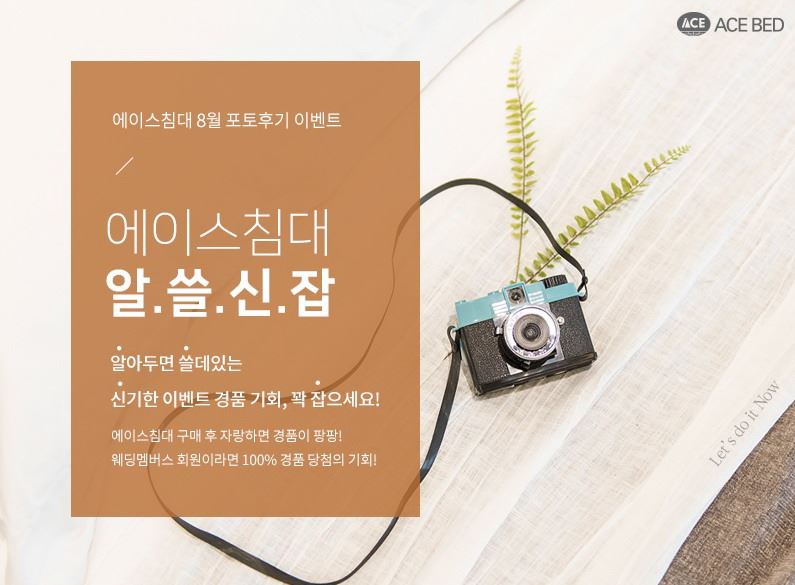 [아시아경제 김유리 기자] 에이스침대가 8월 한 달간 에이스침대 구매 고객을 대상으로 포토후기 이벤트를 진행한다고 10일 밝혔다.포토후기 이벤트는 제품 구매 시 실제 구매자들의 구매 후기를 꼼꼼히 살펴본 후 구매하는 똑똑한 소비자 '스마슈머(smart+consumer)'에게 에이스침대를 직접 구매한 고객들의 솔직한 리뷰를 제공하기 위해 기획됐다.이번 이벤트는 3월 이후 에이스침대 구매 고객을 대상으로 진행되며 우수 포토후기 작성자 10명에게는 백화점 상품권 4만원을 경품으로 증정한다. 웨딩멤버스 회원의 후기가 우수 후기로 선정될 시 백화점 상품권과 함께 5만원 상당의 고급 디퓨저를 추가 증정한다.이벤트 참여는 실제 구매 제품을 촬영해 해당 이미지와 함께 자신의 에이스침대 체험 후기를 에이스침대 홈페이지 포토후기 페이지에 작성하면 된다. 에이스침대를 직접 이용한 고객들의 후기와 함께 에이스침대가 비치된 침실 모습을 보여줌으로써 침실 인테리어 팁도 제공하는 이벤트가 될 예정이다.에이스침대 관계자는 "최근 하나의 제품을 구매하더라도 제품 소재, 가격, 실용성 등 다방면으로 실제 구매 후기를 찾아본 뒤 신중하게 구매하는 '스마슈머'들이 증가하고 있어 이번 이벤트를 기획하게 됐다"며 "에이스침대를 직접 경험해본 소비자들의 솔직한 후기를 통해 에이스침대의 장점과 우수성을 알릴 수 있는 기회가 되고, 실제 침대를 구매한 고객들의 소비자 눈높이에 맞는 리뷰가 예비 침대 구매 예정자들에게 현실적인 구매 가이드가 될 것으로 기대한다"고 말했다.포토후기 이벤트는 8월31일까지 참여할 수 있으며 자세한 사항은 에이스침대 홈페이지에서 확인 가능하다. 김유리 기자 yr61@asiae.co.kr<ⓒ세계를 보는 창 경제를 보는 눈, 아시아경제(www.asiae.co.kr) 무단전재 배포금지>