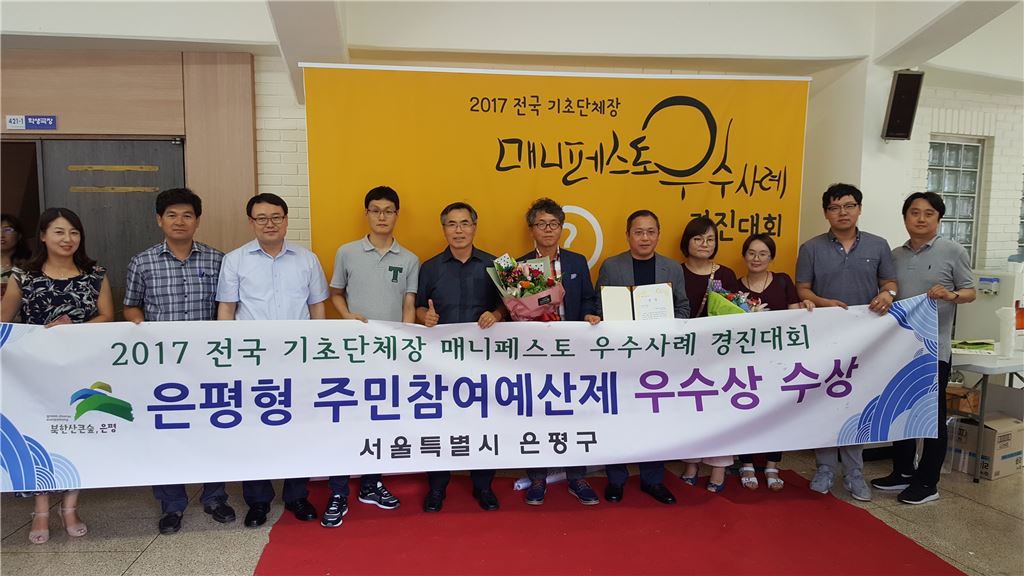 [아시아경제 박종일 기자] 은평구(구청장 김우영)는 한국매니페스토 실천본부에서 주최한 '2017 전국 기초단체장 매니페스토 우수사례 경진대회’에서 참여예산제 분야 우수상을 수상했다.올해로 9회째를 맞은 이번 경진대회는 사회적경제, 도시재생, 청년문제해소, 참여예산제, 지역문화 활성화 등 5개 분야로 나누어 진행, 전국 132개 지자체 325개의 사례가 접수돼 역대 경진대회 중 가장 높은 참여율을 기록했다.이번 대회에서 은평구는 주민참여예산제도를 진정한 주민주도 방식으로 개편해 은평구만의 참여모델을 운영한다는 내용을 담은 '은평형 주민참여예산제도' 사례를 발표했다.은평구가 내세운 '은평형 주민참여예산제도' 핵심은 그간 행정에서 일방적으로 추진하던 주요 사업들을 공론과 숙의과정을 통해 주민들의 실질적인 참여를 보장, 사업 발굴과 결정, 추진 과정을 모두 주민 주도로 이루어 질 수 있도록 한다는 것이다.