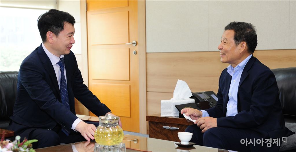 [아시아경제 노해섭 기자]윤장현 광주광역시장(오른쪽)이 11일 오후 시청 접견실에 신임인사차 방문한 이은항 광주지방국세청장을 접견하고 환담을 나누고 있다. / 광주광역시 제공<ⓒ세계를 보는 창 경제를 보는 눈, 아시아경제(www.asiae.co.kr) 무단전재 배포금지>