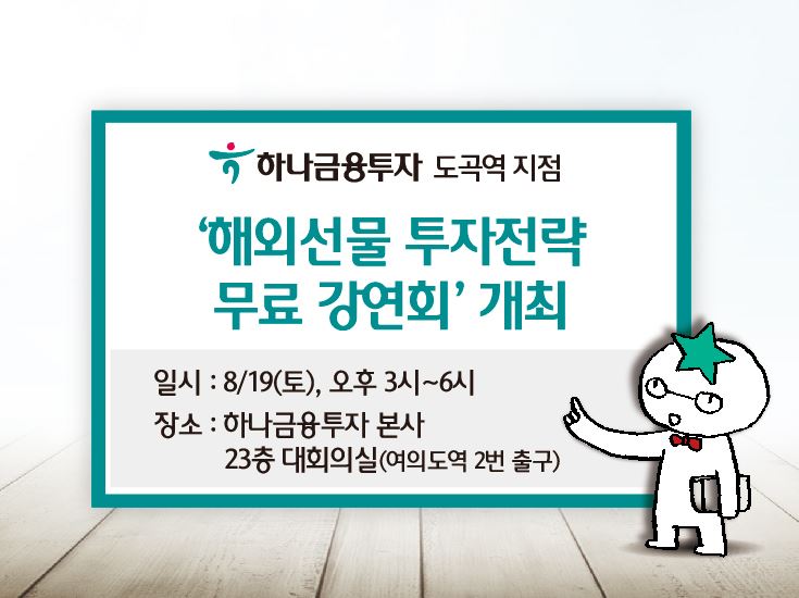 [아시아경제 박미주 기자]하나금융투자 도곡역지점이 오는 19일 오후 3시부터 6시까지 여의도 본사 (여의도역 2번 출구) 23층 대회의실에서 '해외선물 투자전략 무료 강연회'를 개최한다고 16일 밝혔다. 이번 세미나는 개인투자자들이 쉽게 배울 수 있는 해외 선물 전략을 소개하고자 마련한 강연회다.조재상 하나금융투자 도곡역지점 과장이 해외선물의 기초에 대해 강의하고, 현재 카카오티비 해외선물코너에 출연하고 있는 ‘파생아티스트’가 해외선물의 매매 기법을 소개한다. ‘파생아티스트’는 올 상반기 하나금융투자에서 개최한 ‘2017 해외선물옵션 실전투자대회’에서 2위를 기록했다. 강연회는 사전 신청한 100명까지 참가할 수 있다. 참가문의와 신청은 하나금융투자 도곡역지점(02-553-0363)으로 하면 된다.박미주 기자 beyond@asiae.co.kr<ⓒ세계를 보는 창 경제를 보는 눈, 아시아경제(www.asiae.co.kr) 무단전재 배포금지>
