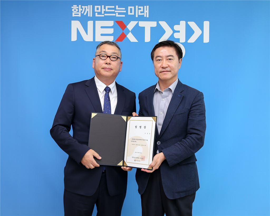 서정걸 한국도자재단 대표이사(왼쪽)가 이재율 경기도 행정1부지사로부터 임명장을 받고 있다.