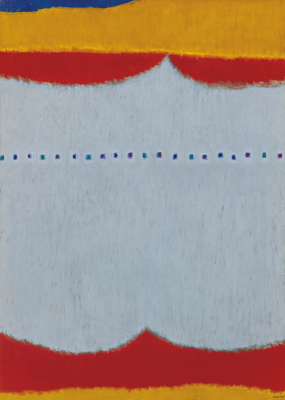 [아시아경제 김세영 기자]케이옥션이 오는 30일 서울 강남구 신사동 본사에서 8월 경매를 실시한다. 이번 경매에는 총 203점, 130억원 규모의 작품이 출품된다. 박수근, 천경자, 백남준, 장욱진, 유영국, 김환기, 정상화, 박서보, 윤형근 등 근·현대 작가들의 엄선한 수작과 송석 이응록의 ‘책가도 여덟 폭 병풍’, 백자철화운룡문호, 겸재 정선의 ‘해주허정도’, ‘전조선청년당대회 관련 사진 넉 점’ 등이 대거 공개된다. 경매 최고가 작품은 김환기의 ‘Sounding 3-VIII-68 #32(1968)’로 추정가 15억~25억원에 출품됐다. 1968년 뉴욕시대 작품으로 서울시대까지 이어지던 구체적 모티프가 사라짐과 동시에 담백하고 투명한 채색과 대형화된 캔버스 특징이 잘 드러난다.김환기, Sounding-3-VIII-68 #32, oil on canvas, 177×126cm, 1968, 추정가 15-25억원<br />