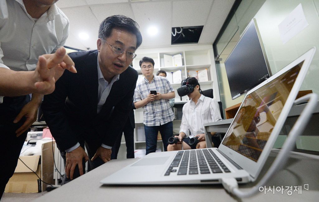 [아시아경제 문호남 기자] 김동연 경제부총리 겸 기획재정부 장관이 18일 서울 강남구 역삼동 TIPS타운에 위치한 스타트업 룩시드랩스를 찾아 관계자와 이야기를 나누며 연구 과정을 살펴보고 있다. 룩시드랩스는 VR 기기를 활용해 뇌파를 측정하고 인간의 감정을 분석하는 연구소다.문호남 기자 munonam@asiae.co.kr<ⓒ세계를 보는 창 경제를 보는 눈, 아시아경제(www.asiae.co.kr) 무단전재 배포금지>