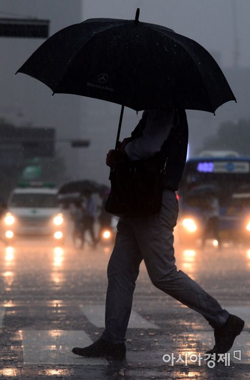 장맛비가 내리는 가운데 우산을 쓰고 가는 시민(사진=아시아경제 DB)