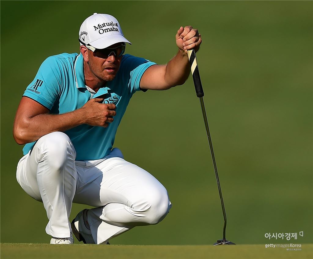 헨리크 스텐손이 윈덤챔피언십 셋째날 18번홀 그린에서 퍼팅라인을 살피고 있다 . 그린스보로(美 노스캐롤라이나주)=Getty images/멀티비츠