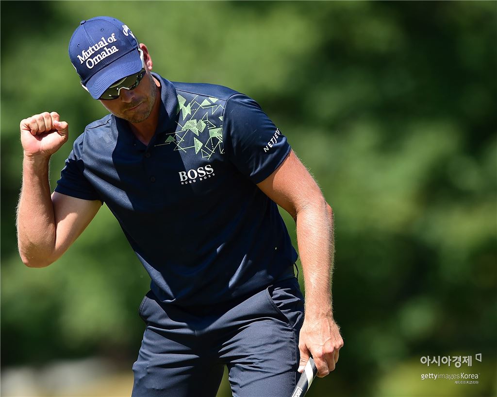 헨리크 스텐손이 윈덤챔피언십 최종일 7번홀에서 버디를 잡아낸 뒤 환호하고 있다. 그린스보로(美 노스캐롤라이나주)=Getty images/멀티비츠