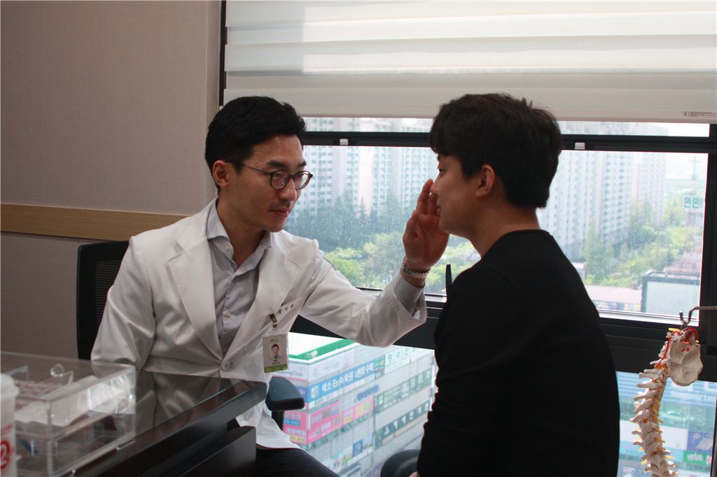 ▲김지용 청연한방병원장이 진료를 보고 있다.