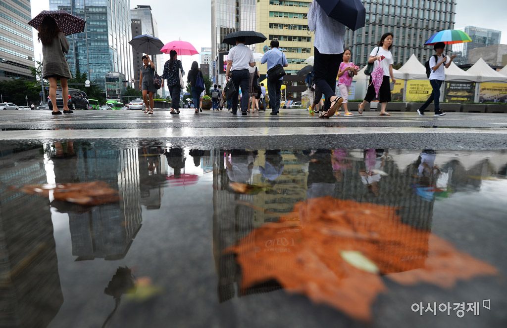 [아시아경제 문호남 기자] 처서(處暑)를 이틀 앞둔 21일 서울 종로구 광화문 네거리에서 시민들이 우산을 쓴 채 발걸음을 옮기고 있다. 기상청은 서해안에 정체돼 있는 저기압의 영향으로 전국이 대체로 흐리고 밤까지 비가 내렸다 그치기를 반복할 것으로 예보했다.문호남 기자 munonam@asiae.co.kr<ⓒ세계를 보는 창 경제를 보는 눈, 아시아경제(www.asiae.co.kr) 무단전재 배포금지>