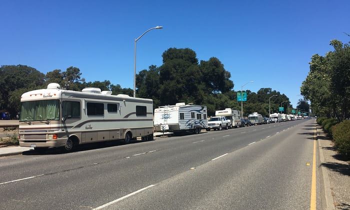실리콘밸리 인근 도로에 들어선 캠핑카/사진=가디언