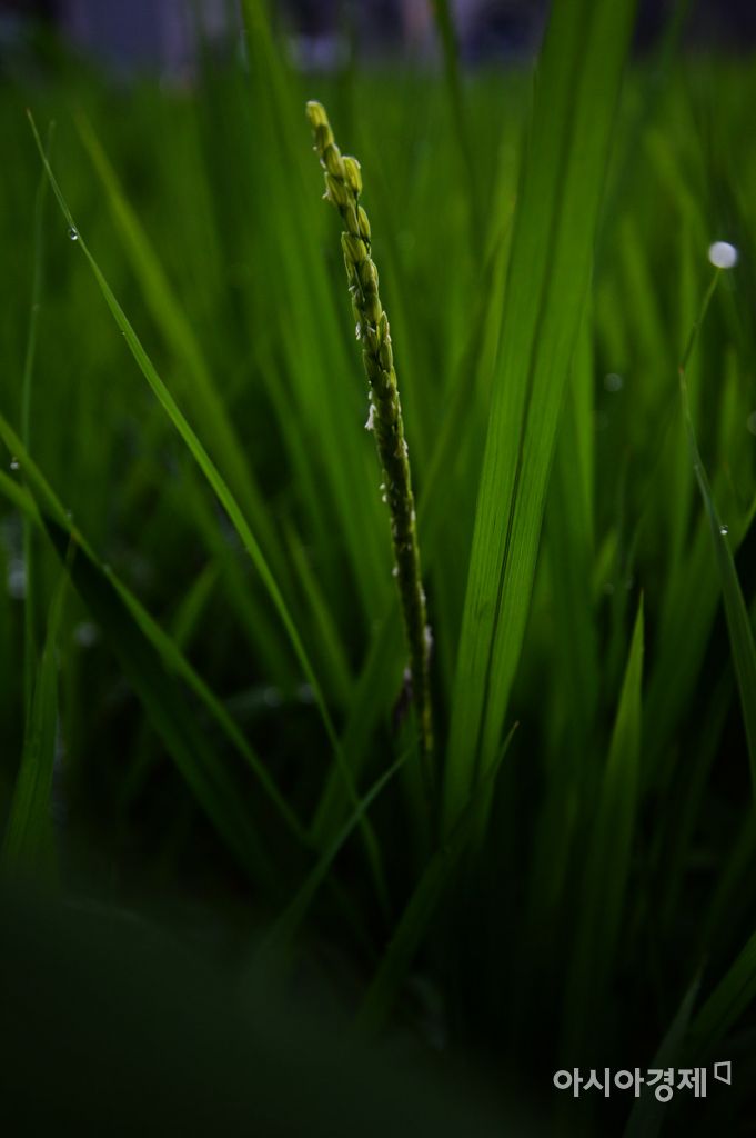 [아시아경제 문호남 기자] 가을의 두 번째 절기, 처서(處暑)이자 전국에 비가 내린 23일 서울 중구 농협 농업박물관 앞에 식재된 벼가 자라고 있다. 문호남 기자 munonam@asiae.co.kr<ⓒ세계를 보는 창 경제를 보는 눈, 아시아경제(www.asiae.co.kr) 무단전재 배포금지>